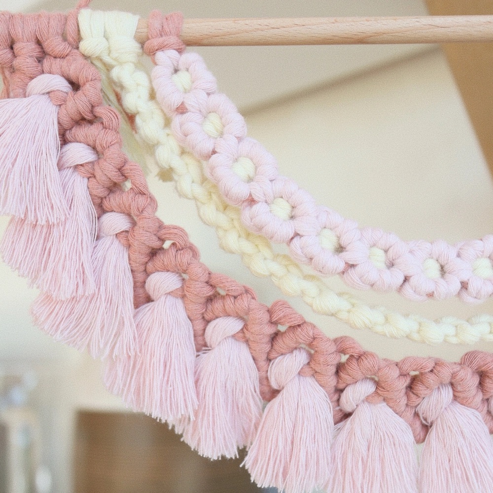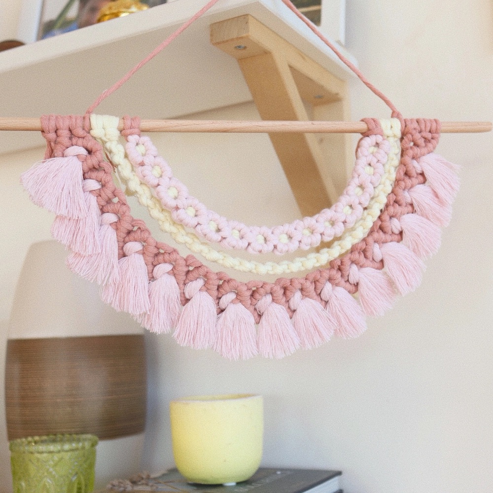 Ez a kis bohém virágmintás makrame falidísz elhozza az igazán üde tavaszi hangulatot otthonodba.