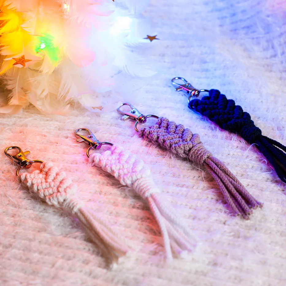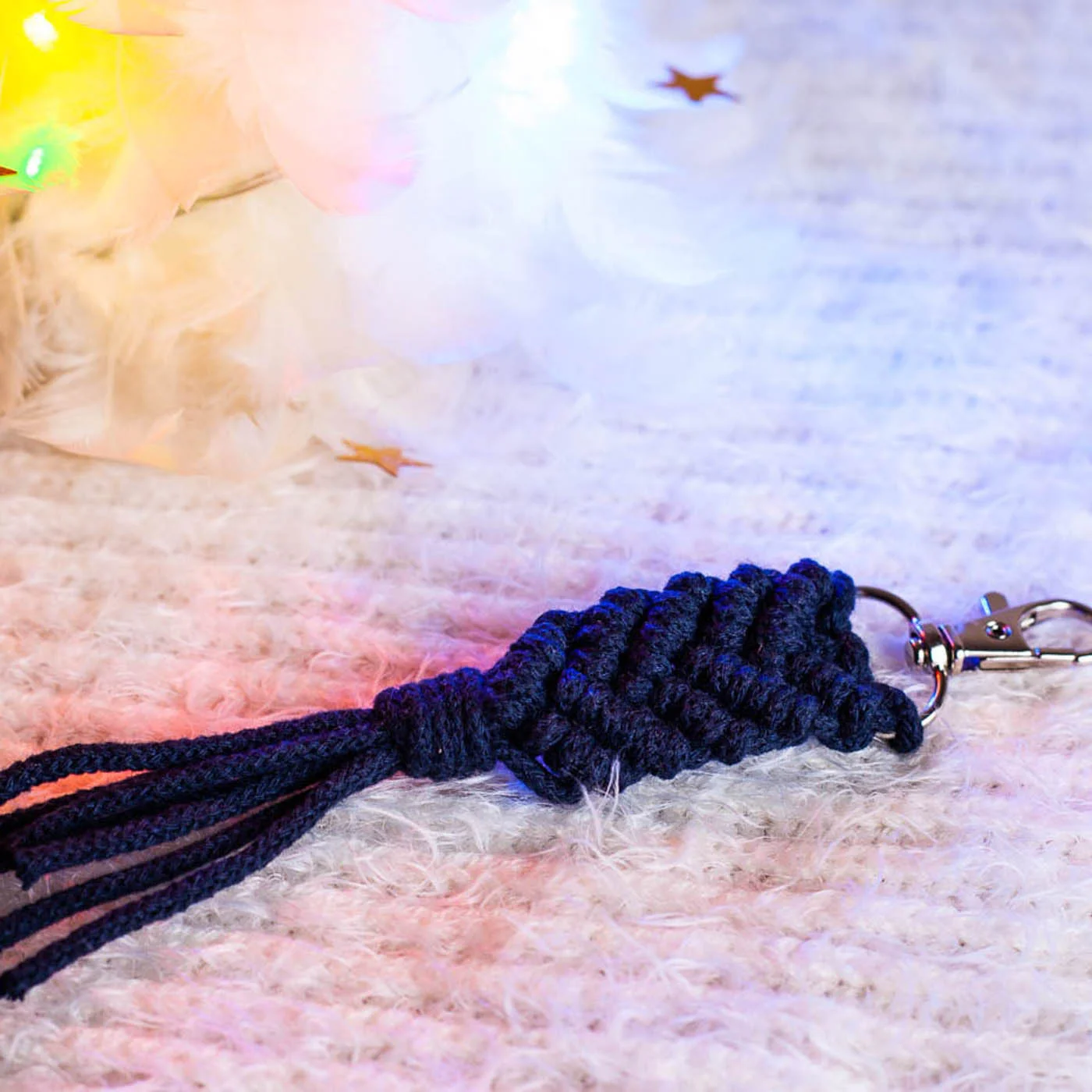 Zsinórfonalból készült kulcstartó, ami különleges, kézzel készült egyedi ajándék családtagok és barátok számára.