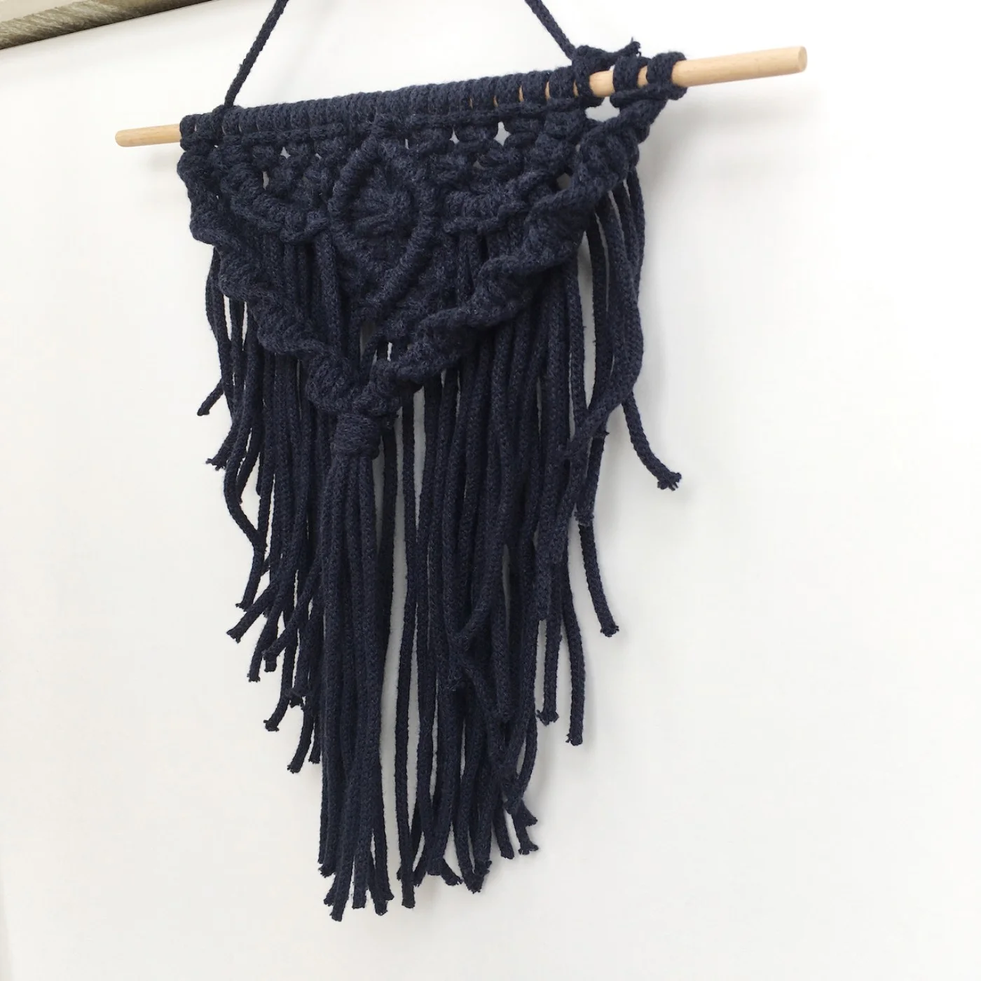 Ez a kicsi, visszafogottan bohém stílusú makramé falidísz vidám hangulatot kölcsönöz otthonodban. Ha van egy kisebb falrész, amit feldobnál egy egyedi darabbal, akkor ez a dísz ideális választás.